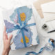 Modernes Großbild gepaart mit einem zeitlosen Blumenmuster mit handgemalten pastellblauen Pappeln für dieses feminine elegante Verpackungspapier.
