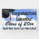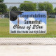 Blaues Himmelshintergrund mit schwarzer Mörtelkappe und Tassel. Personalisierte Outdoor- oder Indoor-Abschlussfeier signiert Banner mit dem Jahr, dem Namen, der Highschool. Eine spektakuläre Art, den Absolventen zu beglückwünschen und Familie und Gäste zu Ihrer Abschlussfeier zu begrüßen.