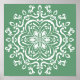 Dieses weiße Mandala liegt auf einem graugrünen Hintergrund. Die Farben sind natürlich und entspannend. Teil der Losonieth Mandala Kollektion.