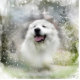 Elegante Winter- / Urlaubsszene mit einem Großen Pyrenäen-Ornament - auch in der Grußkarte erhältlich - "Frohen Festtage".