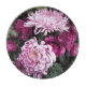 Auf dieser dekorativen, runden Glasschneide-Tafel, die ein Foto von großen, rosa Chrysanthemen, auch Mum-Blume genannt, enthält, würzen und würzen Sie Ihr Essen sicher. Ein schönes, blumengeschmücktes Design!