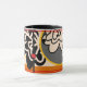 Zeitgenössische freundliche Blumenkaffee-Tasse mit großen Art-Blumen im roten gelben Schwarzen. Vervollkommnen Sie für besonderen Anlass oder Weihnachtsgeschenk. Originalvorlage durch Anne Bell.