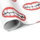 Grosses Lächeln mit leuchtend roten Lippen und weißen Zähnen auf weiß.