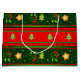 Präsentieren Sie Ihre Geschenke im Stil! Diese große Geschenktasche mit großen, roten und grünen Streifen, die mit grünen Weihnachtsbäumen, roten Blume mit grünen Blätter und niedlichen goldenen Sternen geschenkt wird, ist perfekt für festliche Geschenke. Das ist eine tolle Art, diese Weihnachten eine besondere Überraschung zu präsentieren!