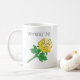 Eine große und schöne gelbe Rose auf einer Tasse mit dem Text Alles Gute zum Muttertag.