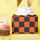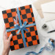 Ein Verpackungspapier, das mit einem schwarzen und hellen orangefarbenen karierten Muster in großer Größe entworfen wurde. Passen Sie die orangefarbene Farbe einfach an.
