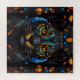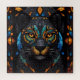 Grosser schwarzer Katzenmosaik Buntglaseffekt Kissen . Farbenfrohe Orangefarbene Augen Set auf einem schwarzen Glasboden mit Blues und grünen Fliesen. Puzzle