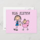 Große Schwester mit kleinen, finsteren T - Shirt u Postkarte