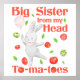 Big Sister von My Head bis My To-ma-Toes - Niedlich wird ein großer Schwesterpun mit einem Hase, Ballon und Tomaten. Kann auch verwenden, um Söhne über Pun Spaß zu lehren! > Niedliche große Schwesterankungsankündigung für ältere Kinder, die eine große Schwester werden! > Personalisieren Sie es! Hinzufügen von individuelle Name, Foto oder Text.