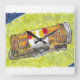 Diese Wanduhr ist mit einem Bild meines Aquarellmonoprints "Big Pill Bottle", 2020 bedruckt. Der Prozess des Aquarellmonoprints macht Spaß. Ich male Wasserfarben auf einer speziell behandelten Glasplatte und drücke dann feuchtes Papier mit einem traditionellen japanischen Druckwerkzeug, das normalerweise für Holzschnitt verwendet wird.