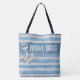 Diese individuell gestaltete Bootstasche ist groß genug, um alles zu tragen, was Sie für einen Tag auf dem Wasser brauchen. Blaue Seestreifen mit weißem Anker bedecken beide Seiten dieser schönen Tasche. Tolle Geschenkidee!