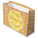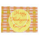 Extravagant orangefarbene und karierte Erntedank große Papiergeschenktüte. Der Text kann personalisiert sein, oder der Text kann entfernt werden. Der Mond der Ernte in Gelb kann auf jede Farbe umgeschaltet werden, zusammen mit dem weißen Hintergrund im karierten Druck.