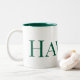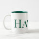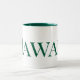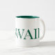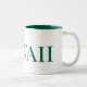 Das ist eine große weiße Kaffeetasse mit einem grünen Innern und das Wort Hawaii steht auf ihr grün. Es ist eine sehr schöne und elegante Stadt