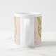 Große Tasse mit hübschem pfirsichblühendem Hintergrund, rosa Vogel, Platz für Ihren Namen und Pflanze. Dank Creative Fabrica für einige der Elemente in der Gestaltung.