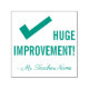 Diese inspirierende Gummi-Briefmarke zeichnet sich durch die Lobesbotschaft "HUGE IMPROVEMENT!" und den Namen eines personalisierten Pädagogen aus. Es ist auch mit einem dekorativen Karo versehen. Es könnte von einem Lehrer, Pädagogen oder Tutor verwendet werden, wenn sie Aufgaben markieren, um anzuzeigen, dass der Schüler eine großartige Arbeit geleistet hat.