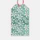 Große weiße Schneeflocken fallen ins Grüne Geschenkanhänger