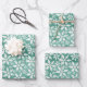 Große weiße Schneeflocken fallen ins Grüne Geschenkpapier Set