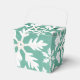 Große weiße Schneeflocken fallen ins Grüne Geschenkschachtel