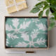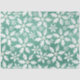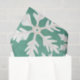 Große weiße Schneeflocken fallen ins Grüne Seidenpapier