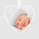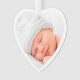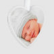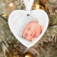Niedliche Weihnachtsgeschenk zum Gedenken an die ersten Weihnachten als Großeltern. vorne ist das Bild Ihres Neugeborenen mit einem weißen, herzförmigen Rahmen versehen. Auf der Rückseite können Sie die Ausdrücke "1. Weihnachten", "Großeltern" personalisieren und den Namen und das Jahr des Babys personalisieren, alles in der saisonalen roten Typografie vor einem weißen Hintergrund.