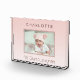 Ein Geschenk oder Beifall eines Neugeborenen, die erste Enkeltochter der Großeltern. Personalisieren und fügen Sie Ihr eigenes Foto, Text/Name. Rose goldfarbene Buchstaben. Hintergrund mit rosafarbenem Farbverlauf.