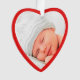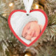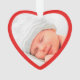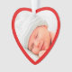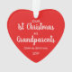 Niedliche Weihnachtsgeschenk zum Gedenken an die ersten Weihnachten als Großeltern. vorne füllt das Bild Ihres Neugeborenen einen roten, herzförmigen Rahmen. Auf der Rückseite können Sie die Ausdrücke "1. Weihnachten", "Großeltern" personalisieren und den Namen und das Jahr des Babys personalisieren, alles in weißer Typografie vor einem roten Hintergrund.