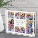 Personalisierter Acrylblock "Opa & Oma", Opa & Oma. Dieser schlichte und elegante Acrylblock ist eine wunderschöne Möglichkeit, hochgeschätzte Erinnerungen zu präsentieren. Das Design bietet Platz für acht Fotos, die in einem Rahmen um die Kanten angeordnet sind, während der Fokus auf den sinnvollen Text in der Mitte behalten wird. In der Mitte wird "Opa & Oma" in einem klassischen Serif-Schriftart angezeigt, mit einer zweiten Zeile in handgeschriebenem Skript, um die Namen der Enkel hinzuzufügen oder eine besondere Nachricht. Der weiße, saubere Hintergrund verleiht ihm ein zeitloses und raffiniertes Ambiente. Vollständig anpassbar, können Sie den Text, die Schriftart, die Farben und die Fotos anpassen, um ein persönliches und bedeutendes Geschenk zu schaffen - ideal für Geburtstage, Feiertage, Jahrestage oder jeden besondere Anlass. Dieser dekorative Acrylblock dient als zeitloser Sake zum Feiern geliebter Großeltern.