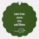 Foto von Enkeln auf grünem Hintergrund mit Großeltern Gruß und Jahr auf der Vorderseite. Ihre Namen sind auf der Rückseite.