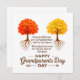Bunter Großelterntag "Großkinder sind ein Link zur Zukunft der Großeltern. Die Großeltern sind die Verbindung des Kindes zur Vergangenheit" zeigt eine Abbildung von Herbstbäumen mit Wurzeln. Dieses herzliche Zitat von Großeltern macht Oma, Opa oder Großeltern ein nettes Geschenk für ihren besonderen Tag.