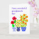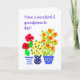 Eine hübsche Großeltern-Tageskarte mit Töpfen hell farbigen Blumen, von einer handgemalten Papiercollage durch Judy Adamson. Wenn Sie den Text der vorderen Abdeckung geändert in jeder Hinsicht (z.B. ein anderes Alter, eine Person oder eine Sprache) möchten, treten Sie mit mir bitte durch meinen Speicher in Verbindung und ich bin glücklich, ihn sofort zu tun.