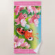 Großer Badetuch Marienkäfer-Blumengarten. Marienkäfer, der durch freundliche Snapdragon Blumen gejagt wird.