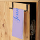 Grosser blauer Skriptname, Lavenderstreifen auf We Geschirrtuch