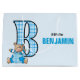 Der süße Weg, Geschenke für kleine Jungen oder Babyduschen, deren Name mit dem Buchstaben B beginnt, in blauem Gingham mit einem süßen Teddybär und seinem Monogramm gemacht.
