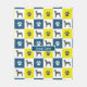Great Dane Hund Silhouette gelb und blau Gitter abstrakt Design. Die Pfotenabdrücke wechseln mit der Form des Haustierkinns und bilden ein niedliches Muster. Sie können mit Ihrem Hundenamen personalisieren oder einfach die Rasse im blauen Raum verlassen.