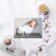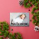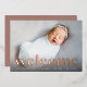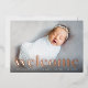 Frische und moderne Geburtsankündigungskarten verfügen über ein vollblutförmiges, horizontales oder landschaftsorientiertes Foto mit "willkommen" überlagert in der Rose Goldfolienschrift. Personalisieren Sie sich mit dem Namen des Babys und den Geburtsstatistiken unten, und fügen Sie drei zusätzliche Fotos auf den Rücken, zusammen mit einer persönlichen Nachricht.