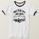 Schwarzweiss-T - Shirt mit einem Mann in einem Bootsfischen und -händen, die zeigen, wie "groß" der Fisch war.