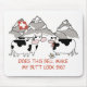 Humorvolle Cartoonkühe in einer alpinen Weide fragen diese geladene Frage mit den Alpen und der Schweizer Flagge im Hintergrund