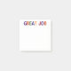Dieses 3 x 3 Pad Post-its Noten ist perfekt für jeden! Mit seinem hellen, fröhlichen Sprichwort und dem klassischen Blockdruck "Great Job" wäre es großartig, jedem, der in letzter Zeit eine großartige Arbeit geleistet hat, zu geben, oder es wäre eine wunderbare Notiz, um jemandem das Mittagessen, den Schreibtisch, die Schularbeit, den Computer, usw. aufzustellen.