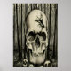 Ein beängstigender Schädel im dunklen Wald, mit einem Riss im Kopf. Das ist eine künstlerische KI.