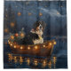 Set segelt mit dieser sehr detaillierten Abbildung in den Zauber der Urlaubssaison und zeigt einen stolzen Hund, der in einem festlich dekorierten Boot sitzt und über einen ruhigen Weihnachtssee gleitet. Die Lichter der nahen Kiefernbäume reflektieren das Wasser und warmen, festlichen Glanz, der das gemütliche Ambiente verstärkt. Die Ornamente versetzen sich von den Seiten des Bootes, während die Laternen leuchten und eine Szene schaffen, die das wahre Wesen der Weihnachtswärme und -freude einfängt. Dieses nostalgische Kunstwerk bringt eine Touch von Urlaubsmagie in jeden Raum, perfekt für diejenigen, die den Geist der Saison schätzen.
