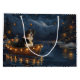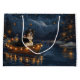 Set segelt mit dieser sehr detaillierten Abbildung in den Zauber der Urlaubssaison und zeigt einen stolzen Hund, der in einem festlich dekorierten Boot sitzt und über einen ruhigen Weihnachtssee gleitet. Die Lichter der nahen Kiefernbäume reflektieren das Wasser und warmen, festlichen Glanz, der das gemütliche Ambiente verstärkt. Die Ornamente versetzen sich von den Seiten des Bootes, während die Laternen leuchten und eine Szene schaffen, die das wahre Wesen der Weihnachtswärme und -freude einfängt. Dieses nostalgische Kunstwerk bringt eine Touch von Urlaubsmagie in jeden Raum, perfekt für diejenigen, die den Geist der Saison schätzen.