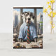 Ein anthropomorphisierter großer Däne, der hinter einem chaotischen Schreibtisch in einem Hochhaus sitzt und ein Shirt und eine Krawatte zum Vatertag trägt. Text ist bearbeitbar.