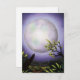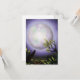 Eine farbenfrohe abstrakte Fantasy-Malerei, die ein großes, weißes Vollmond zeigt, das nachts über einer Naturlandschaft scheint, während ein kleiner Frosch sie beobachtet.
