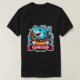 Ein Cartoon-Hai mit einem Lifebuoy verwöhnt einen Hot Dog mit lebhaften Hängen, umgeben von Wellen und farbenfrohen Designelementen. Der Text "Cape Cod" wird deutlich auf einem roten Band unter dem Hai angezeigt.