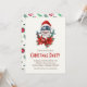 Erleben Sie die Faszination der Weihnachtszeit mit dieser großen weißen Haiweihnachtseinladung, einer skurrilen und herzlichen Ergänzung zu Ihren Festlichkeiten. Diese bezaubernde Karte verfügt über einen farbenfrohen Hai, der mit einer Weihnachtsmannmütze geschmückt ist und mit einer roten Poinsettia-Garage geschmückt ist, und das Set gegen eine schneebedeckte Winterlandschaft.
