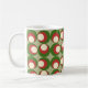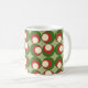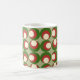 Diese Tasse hat ein zeitgenössisches Weihnachtsdesign aus drei Kreisen, die übereinander liegen; eine grüne, eine rote und eine weiße. Jeder Kreis wird dann um 90 Grad gedreht, um ein Quadrat von Kreisen zu bilden. Wie das Design, aber wollte andere Farben? Nachricht.