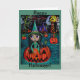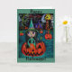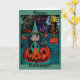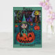 Großes Augen-Halloween-Hexe-Mädchen-Reiten in Karte