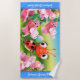 Grosses Badetuch Ladybug Blumengarten. Blaue Kante