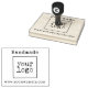 Machen Sie mit dieser Vorlage Ihr eigenes großes quadratisches und handgeschriebenes Logo. Diese Briefmarke ist eine ausgezeichnete Wahl für jeden kleinen Unternehmer. Der handgeschriebene Schriftart mit Ihren Informationen und Ihrem individuellen Firmenlogo in der Mitte schafft einen beruflichen Look. Vollständig anpassbar, indem Sie den "Personalize" Knopf drücken, die Leerzeichen durch Ihre Informationen und das Bild durch Ihr eigenes berufliches Logo oder Design ersetzen. Ihre Kunden werden es zu schätzen wissen!
