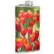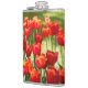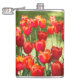 Grosses Feld roter Tulpen. Rote Tulpen an einem Sommertag. Das Foto wurde im Mai 2022 aufgenommen. Das Poster ist für die Innenarchitektur geeignet.